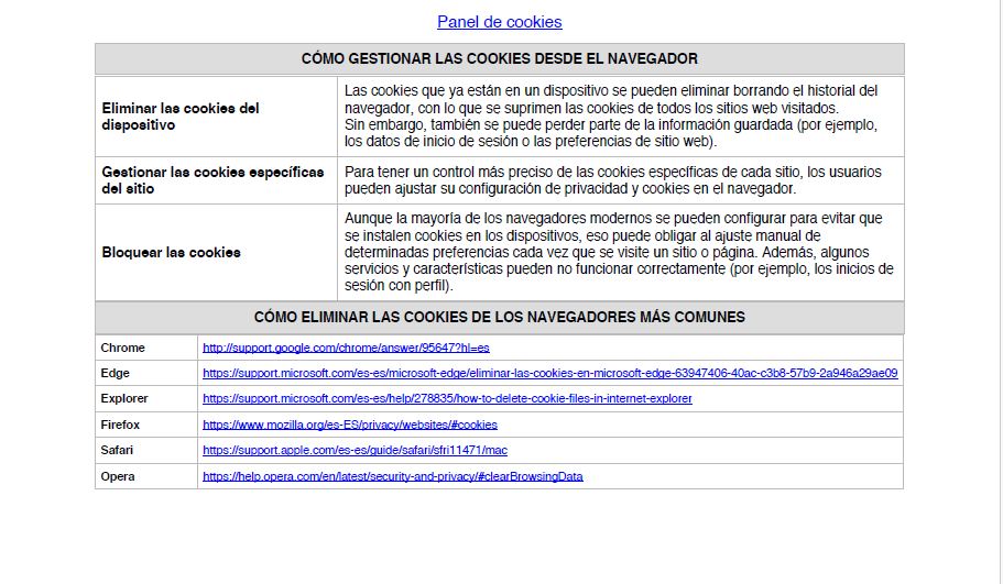 Las cookies y otras tecnologías similares tales como local shared objects, flash cookies o píxeles, son herramientas empleadas por los servidores Web para almacenar y recuperar información acerca de sus visitantes, así como para ofrecer un correcto funcionamiento del sitio.